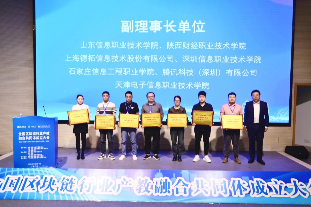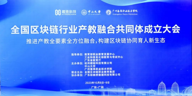 2023年10月8日至9日,全国区块链行业产教融合共同体成立大会在广州召开,我校选派区块链技术应用专业负责人参会。经全国区块链行业产教融合共同体理事会选举,我校成功当选全国区块链行业产教融合共同体副理事长单位。