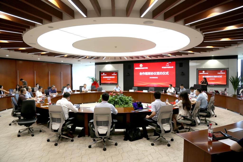 为进一步深化产教融合校企合作,提升学校办学水平,促进职业教育高质量发展,8月2日上午,学校院长程书强赴华为西安研究所调研,与华为技术有限公司签署校企合作框架协议,并为ICT会计产业学院智慧实训中心-华为桌面云样板工程揭牌。华为陕西政企教育医疗总经理郭程、职教行业总监李涛等华为公司相关负责人,学校党政办、教务处、用友·新道会计学院、学生工作处、党委宣传部相关负责人参加了签约仪式。