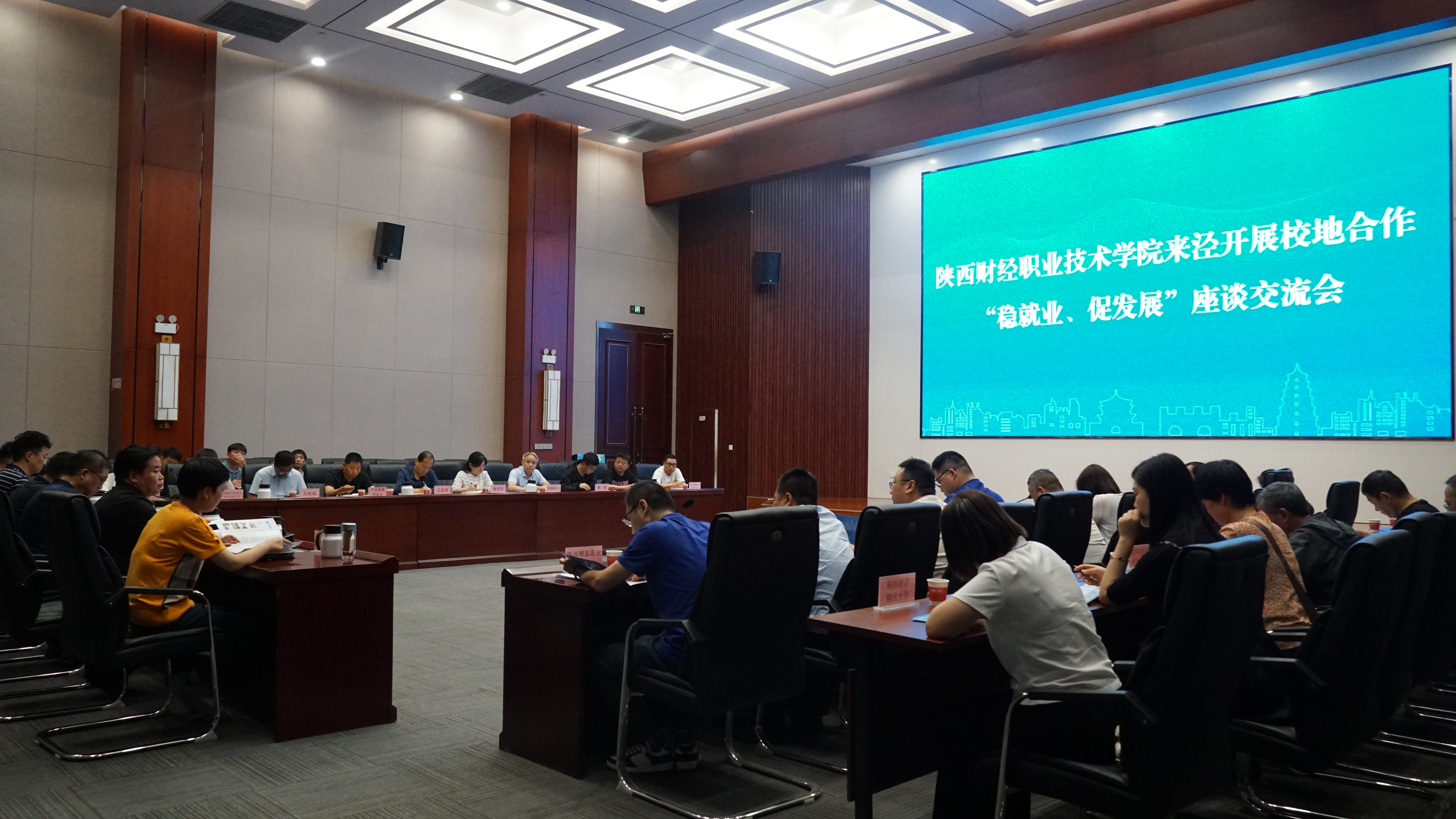 随后,在泾阳县秦创原会议室举行的座谈会上,与会人员观看了我校宣传片,了解了我校的发展历程和近年深化教育教学改革取得的巨大成效。陕西声威建材集团有限公司、陕西雅泰乳业有限公司、陕西金隅加气装配式部品有限公司、西安德普赛科(泾阳)计量设备有限责任公司等企业负责人分别就企业现状、用工需求等进行了交流发言。