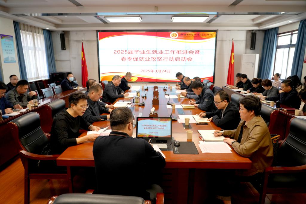 为进一步深入贯彻党中央、国务院关于做好高校毕业生就业工作决策部署,抓住春季开学后促就业工作攻坚期,加快推进我校毕业生就业工作,3月24日,我校在办公楼四楼会议室召开了2025届毕业生就业工作推进会暨春季促就业攻坚行动启动会。党委书记高玉峰、校长程书强出席会议。学生工作处、各二级学院及相关部门负责人,大学生就业指导中心及全体毕业班辅导员50余人参会。会议由副校长雷旭主持。
