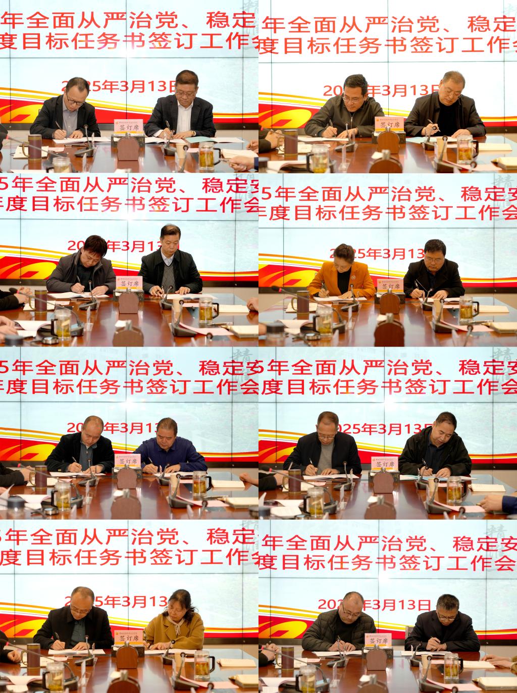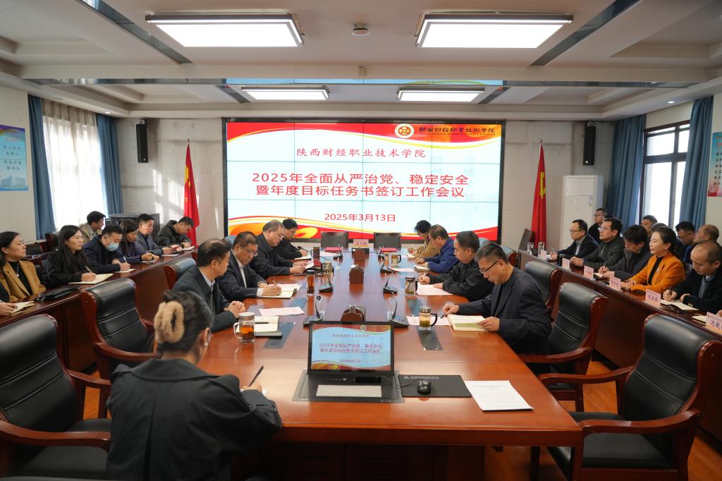 3月13日上午,我校在办公楼四楼会议室召开2025年全面从严治党、稳定安全暨年度目标任务书签订工作会。学校领导班子成员、全体处级干部参会。会议由校长程书强主持。