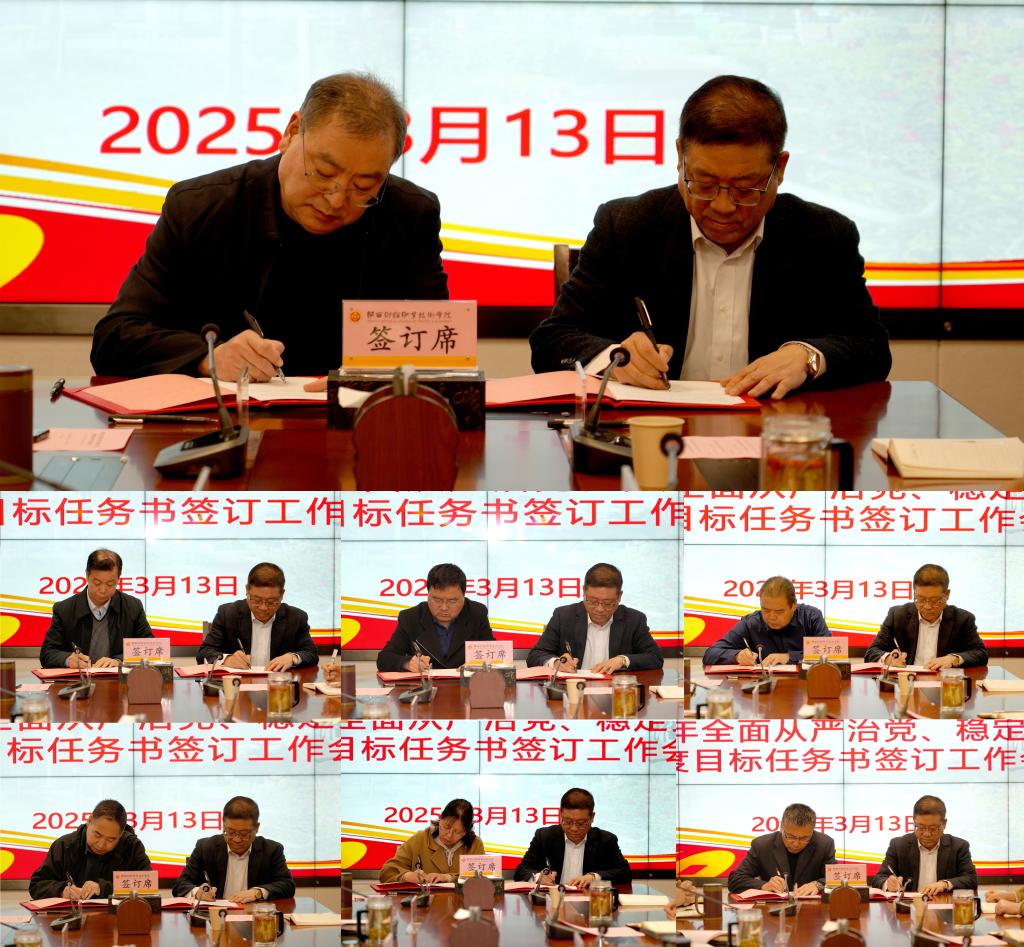 会议举行了全面从严治党责任书、稳定安全责任书和部门年度目标任务书签订仪式。党委书记高玉峰与学校领导班子成员签订了全面从严治党责任书;学校党政主要领导与分管领导签订了稳定安全责任书;领导班子成员与各自联系指导的基层党组织负责人或部门负责人签订全面从严治党责任书、稳定安全责任书和部门年度目标任务书。通过层层签订责任书和任务书,一级抓一级,层层抓落实,将压力和责任向下传导,推动了全面从严治党向基层延伸,压实了稳定安全工作责任,保障了目标任务有效落实。