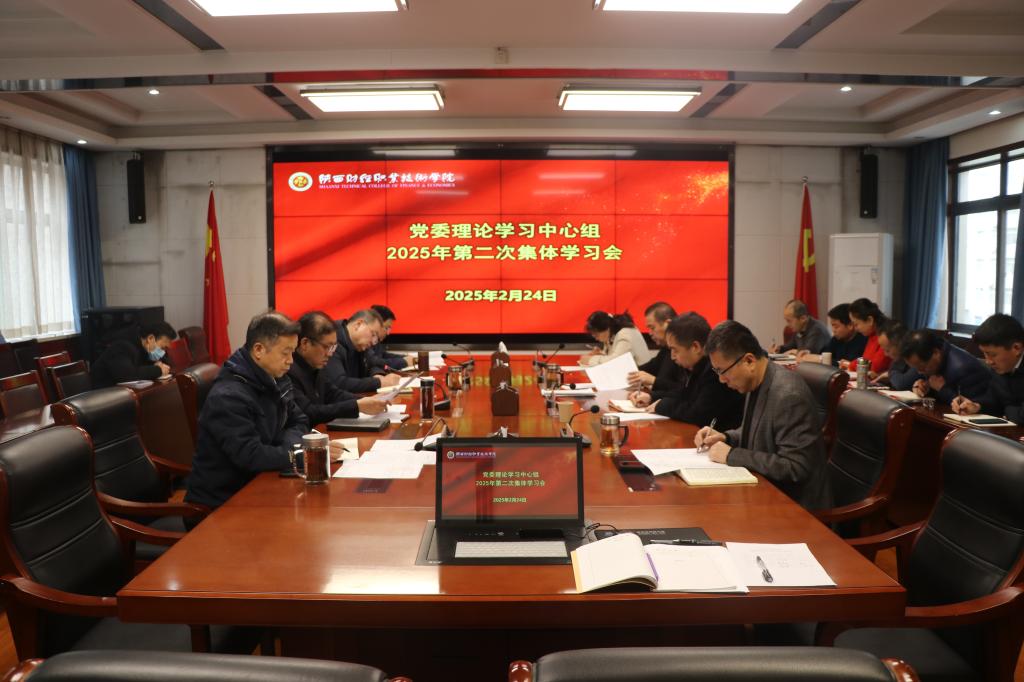 2月24日下午,我校在办公楼四楼会议室召开党委理论学习中心组2025年第二次集体学习会。学校领导班子成员,党委工作部门负责人、二级学院党组织负责人、马克思主义学院院长参加。会议由党委书记高玉峰主持。