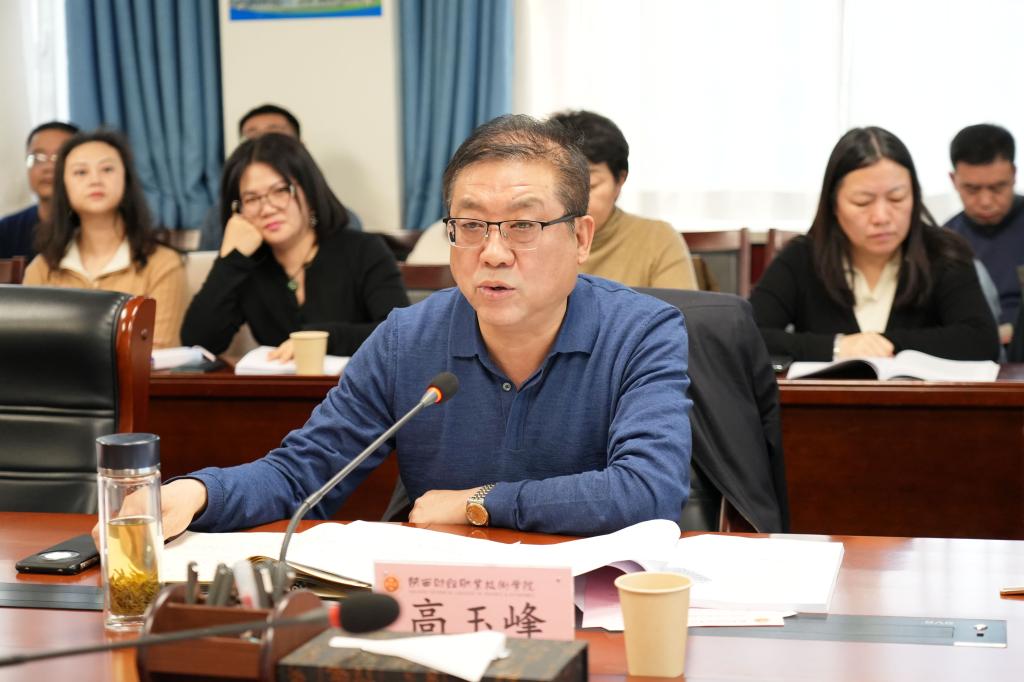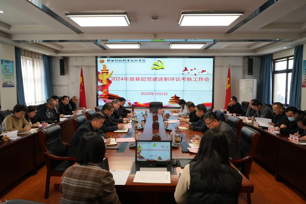1月2日下午,我校2024年度基层党建述职考核工作会在办公楼四楼会议室召开。学校党委领导班子成员,各党总支、直属党支部书记,各二级学院院长,市级政协委员、人大代表,党政办、组织、宣传部门党务工作者代表近40人参加了会议。会议由党委书记高玉峰主持。