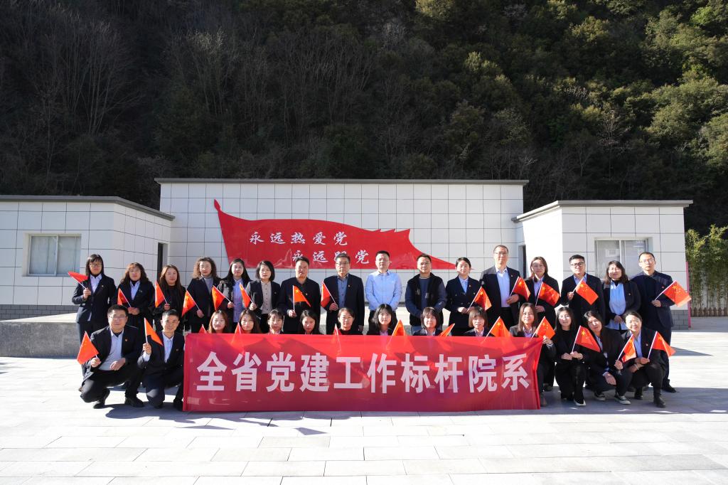 红岩寺镇是商洛地区第一个苏维埃政权红岩寺区苏维埃政府及中共五星县委的所在地。1935年春,红25军战略转移来到红岩寺镇,建立了红色革命政权,并于当年2月11日在红岩寺戏楼前召开了人民群众大会,宣布成立红岩寺区苏维埃政府。而今红军战斗过的红岩寺戏楼、烈士陵园、谷子沟已成为柞水县开展革命历史教育和爱国主义教育的基地。12月1日上午,阳光洒满大地,红岩寺纪念馆在冬日的阳光下更显庄严肃穆。高玉峰与数字商务学院全体党员干部身着整齐的服装,在纪念馆前整齐列队,庄严宣誓,重温入党誓词,表达对革命先烈的深切缅怀和崇高敬意。