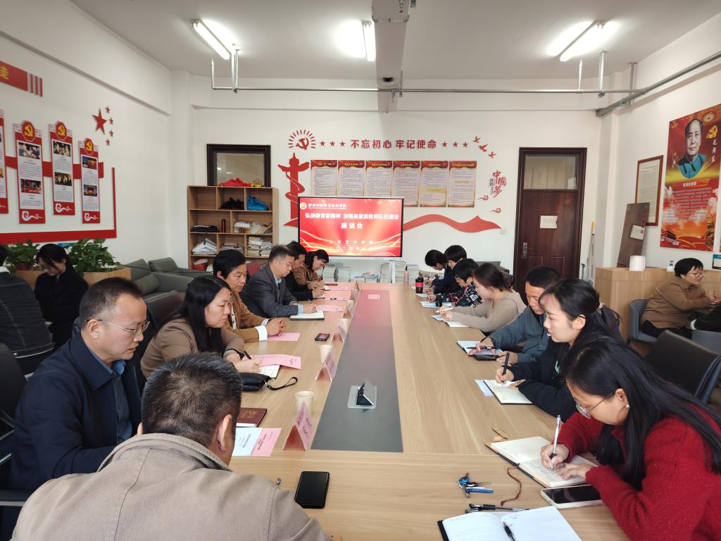 为深入贯彻落实《陕西财经职业技术学院弘扬教育家精神加强新时代高素质专业化教师队伍建设工作实施方案》,充分发挥教育家精神在教师队伍建设中的引领作用,10月16日至11月13日,校党委副书记朱华斌一行先后到会计学院、大数据与人工智能学院、数字商务学院、经济与金融学院、人文艺术学院、运动与健康管理学院、全北学院、应急管理学院、马克思主义学院等9个二级学院分别召开了“弘扬教育家精神,加强高素质教师队伍建设"专题座谈会。各二级学院处科级干部、副高级以上职称专任教师、新入职教师及辅导员代表参加会议,人事处处长侯文亮、人事科科长张珺列席会议。