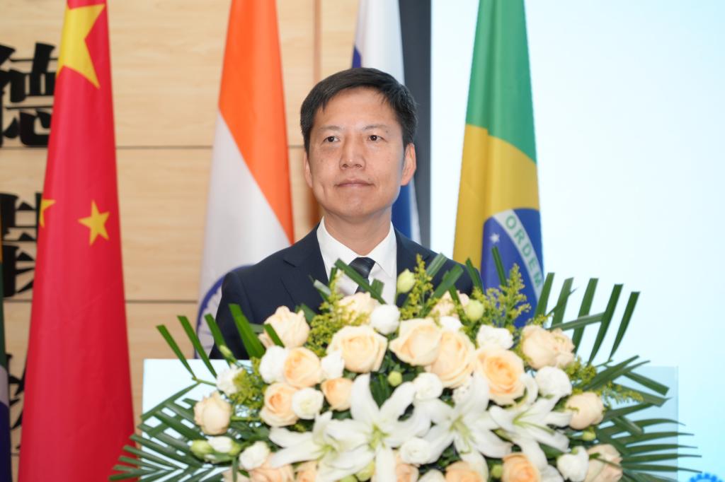 程书强在致辞中简要介绍了我校的办学情况以及学校近年来稳步推进开门办学、开放办学、国际化办学,聚焦内涵质量,锚定双高建设,对接产业办专业等方面取得的突出成就。程书强表示,金砖国家技能发展与技术创新大赛是推动金砖国家间技术创新、教育合作、人文交流的重要平台,我校愿与各参赛院校一道,利用好这个平台,持续深化交流互鉴,共享技能大赛经验,共商国际合作项目,共育高素质技能人才,用技能之光照亮“一带一路”幸福之路。