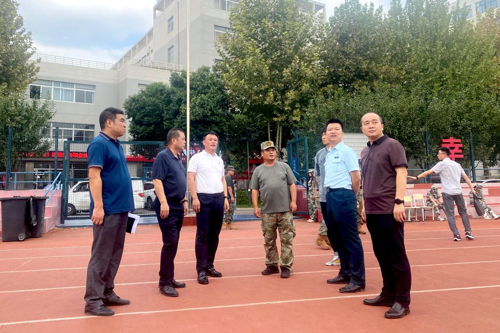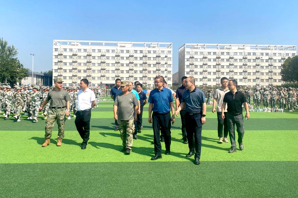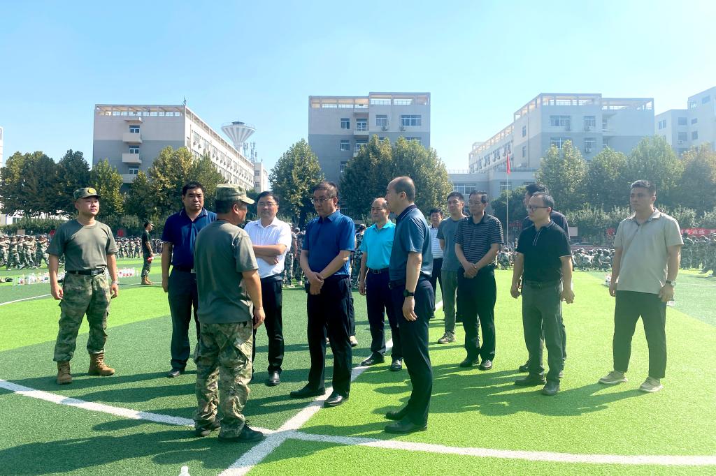 军训期间,学校党委书记高玉峰在党委副书记、纪委书记殷兴光及有关部门负责同志的陪同下,来到军训现场检查指导新生军训工作,看望慰问军训新生、跟训辅导员和承训教官。