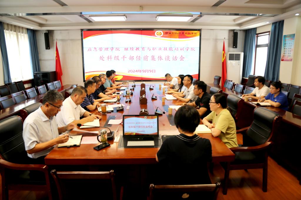 会上,穆天楠宣布了应急管理学院、继续教育与职业技能培训学院新任职处科级干部的任免职决定。殷兴光进行集体廉政谈话,提出四点要求:一要转变工作作风,用延安精神、遵义会议精神中蕴含的共产党人优秀品质净化心灵、淬炼党性,做作风过硬、师生满意的好干部。二要力戒庸政懒政行为,牢固树立求真务实、一心为民、清正廉洁、艰苦奋斗的宗旨意识,做勤政廉政、率先垂范的好干部。三要落实一岗双责,廉政工作与日常工作要同部署同安排,切实增强干部主动接受监督的意识,做履行监督责任的好干部。四要坚守责任、敢于担当,在矛盾面前敢抓敢管、敢于碰硬,敢于承担难事、棘手的事,做忠诚干净担当的好干部。