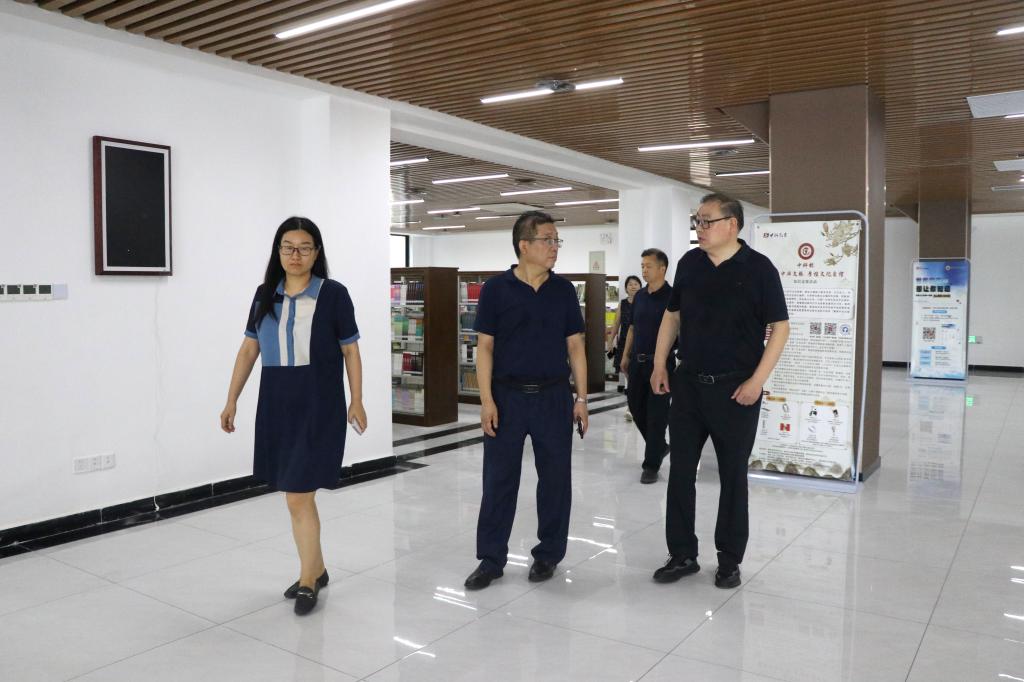在图书馆、体育馆。高玉峰、程书强详细了解了图书分类上架、教师捐赠图书、学生图书借阅情况,询问了体育馆安全检测和设备使用情况。要求加强图书的分类管理、提高使用效率,做好场馆和设备的检修维护。