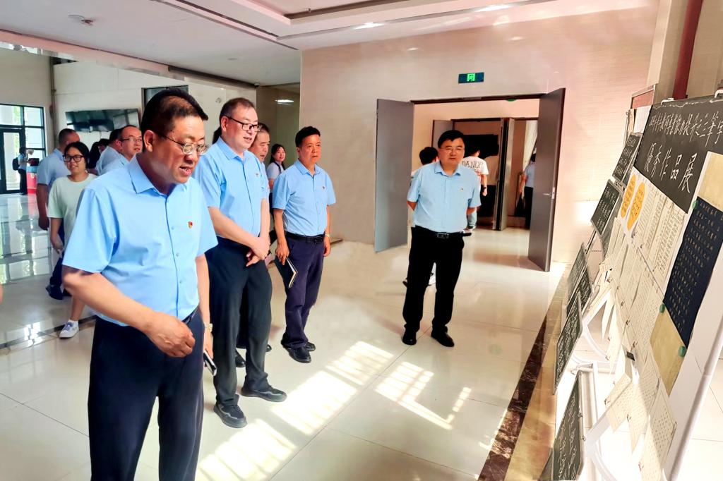 精雕细琢展风采,翰墨丹青铸师魂。7月1日,我校举办了2024年青年教师专业能力提升之“三笔字”训练营优秀作品展。党委书记高玉峰,校长程书强,党委副书记朱华斌,党委副书记、纪委书记殷兴光,副院长雷旭,在教务处处长刘军的陪同下亲临现场观摩展出的作品,与全校师生共同见证了青年教师的成长与蜕变。一幅幅精美的钢笔字、毛笔字及粉笔字作品整齐排列在展板上,它们或遒劲有力、或温婉细腻、或灵动飘逸,充分展示了青年教师在训练营中的学习成果。展览期间,不少师生驻足欣赏、交流心得,共同感受着书法的魅力与教育的温度。这场展览不仅为全校师生提供了一个相互学习和交流的平台,更激发了大家对于书法艺术的热爱与追求。