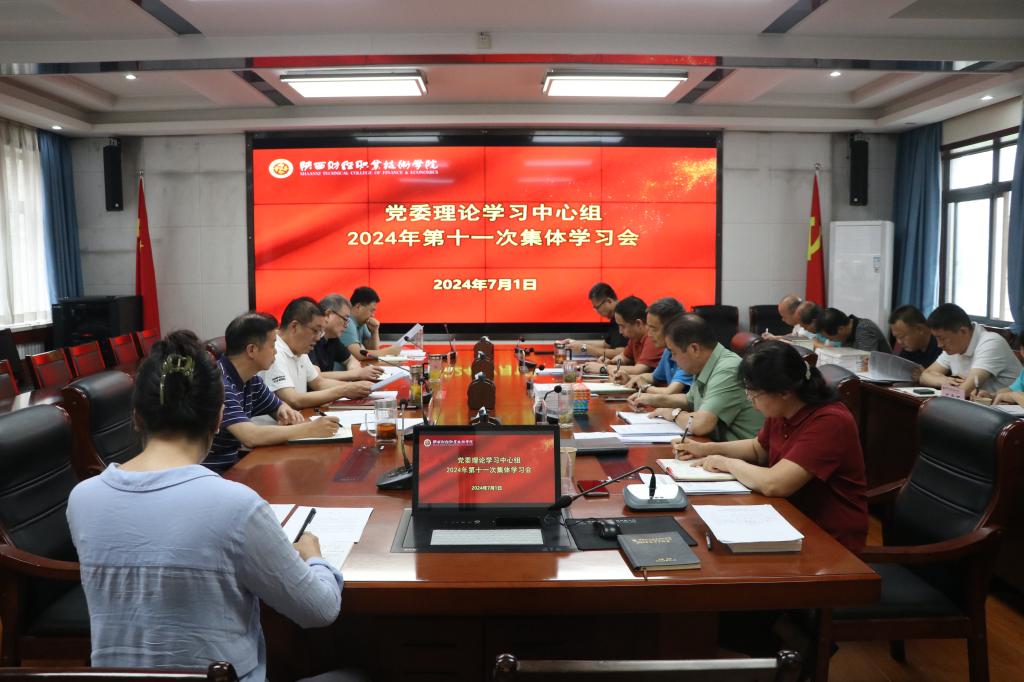 7月1日上午,我校在办公楼四楼会议室召开党委理论学习中心组第十一次集体学习会。学校领导班子成员,党委工作部门负责人、二级学院党组织负责人、马克思主义学院院长参加。会议由党委书记高玉峰主持。