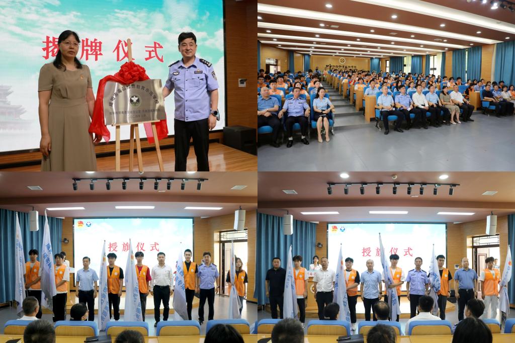 严丽丽与刘磊共同为咸阳市毒品预防教育示范学校揭牌。与会领导为驻咸11所高校大学生禁毒专项实践志愿服务队代表授旗。大家集体观看《禁毒“青力量”——以青春之名 筑禁毒防线》宣传片,暑期“三下乡”禁毒专项实践志愿服务队代表王洁蕊同学作表态发言,表达了新时代咸阳青年坚决对毒品说“不”的坚定决心!