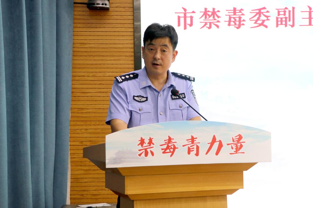 禁毒委副主任、市公安局副局长刘磊为参加启动仪式的禁毒青年志愿者发出出征寄语,他希望,广大青年学生积极投入到禁毒活动中来,共同唱响“珍爱生命,远离毒品”的主旋律。