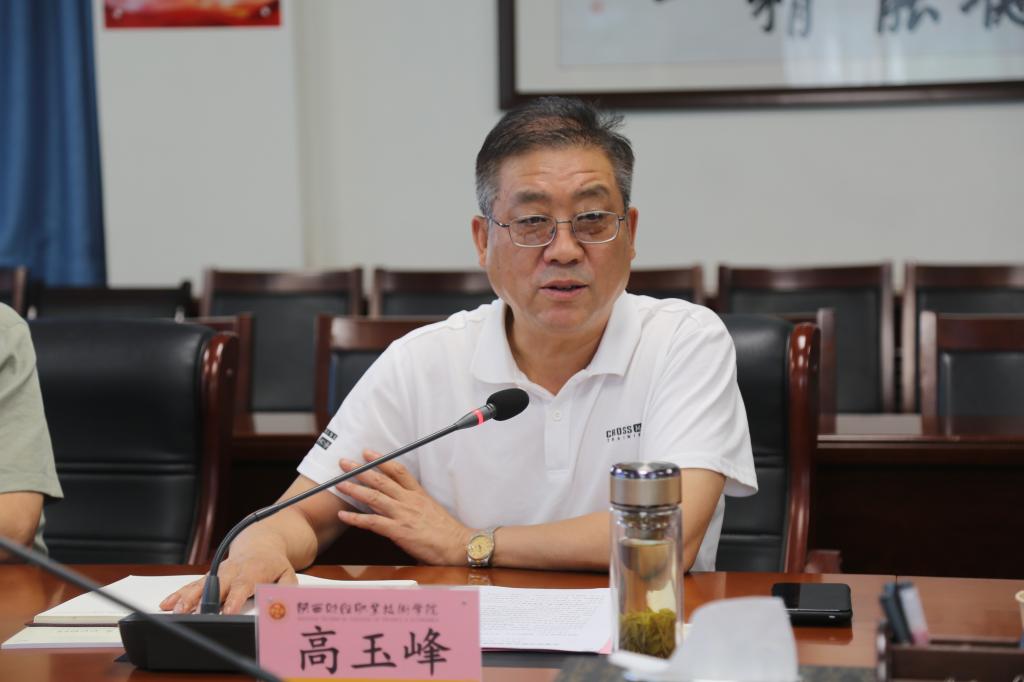 高玉峰代表学校致辞,他对刘迎军会长一行莅临指导表示热烈欢迎!对陕西省经济联合会长期以来对学校教育事业发展给予的大力支持表示衷心感谢!他重点从“坚持党建引领、凝聚发展活力,深化产教融合、赋能人才培养,推进国际办学、扩大学校影响,坚持以生为本、育人成效显著,推进社会服务、助力区域发展”等五个方面介绍了学校的办学思路、改革举措、办学成果、办学特色。他表示,弘扬中华优秀传统文化是学校的职责所在,学校将一如既往加强工艺美术专业建设和工美人才培养,切实落实立德树人根本任务,助力陕西工艺美术事业振兴繁荣。他希望陕西省经济联合会积极为学校搭建校企合作、技能培训、对外交流的平台,继续支持学校教育事业高质量发展。