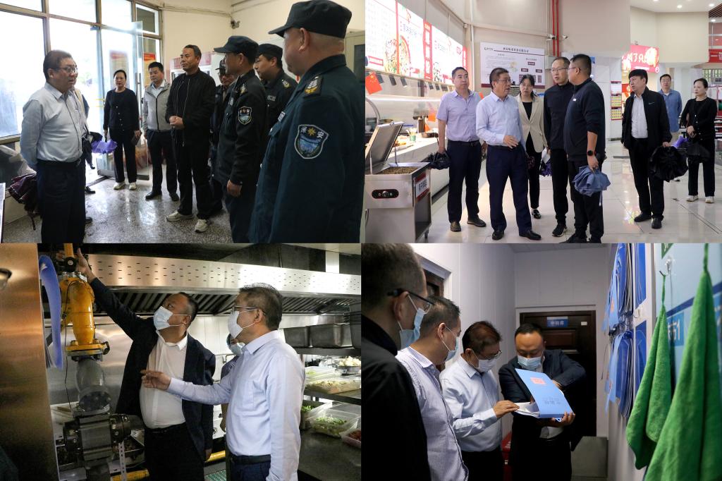高玉峰一行先后来到学校大门处、实训楼、学生餐厅、学生公寓、教学楼、图文中心等地走访检查。