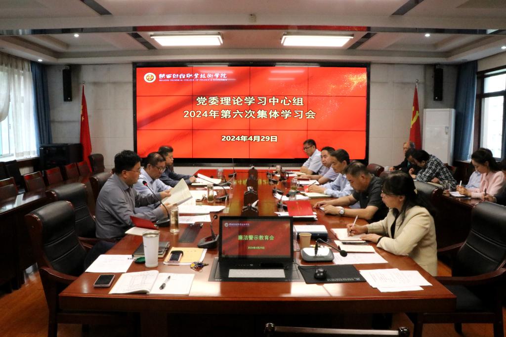 4月29日上午,我校在办公楼四楼会议室召开党委理论学习中心组第六次集体学习会。我校领导班子成员,党委工作部门负责人、二级学院党组织负责人、马克思主义学院院长参加,会议由党委书记高玉峰主持。