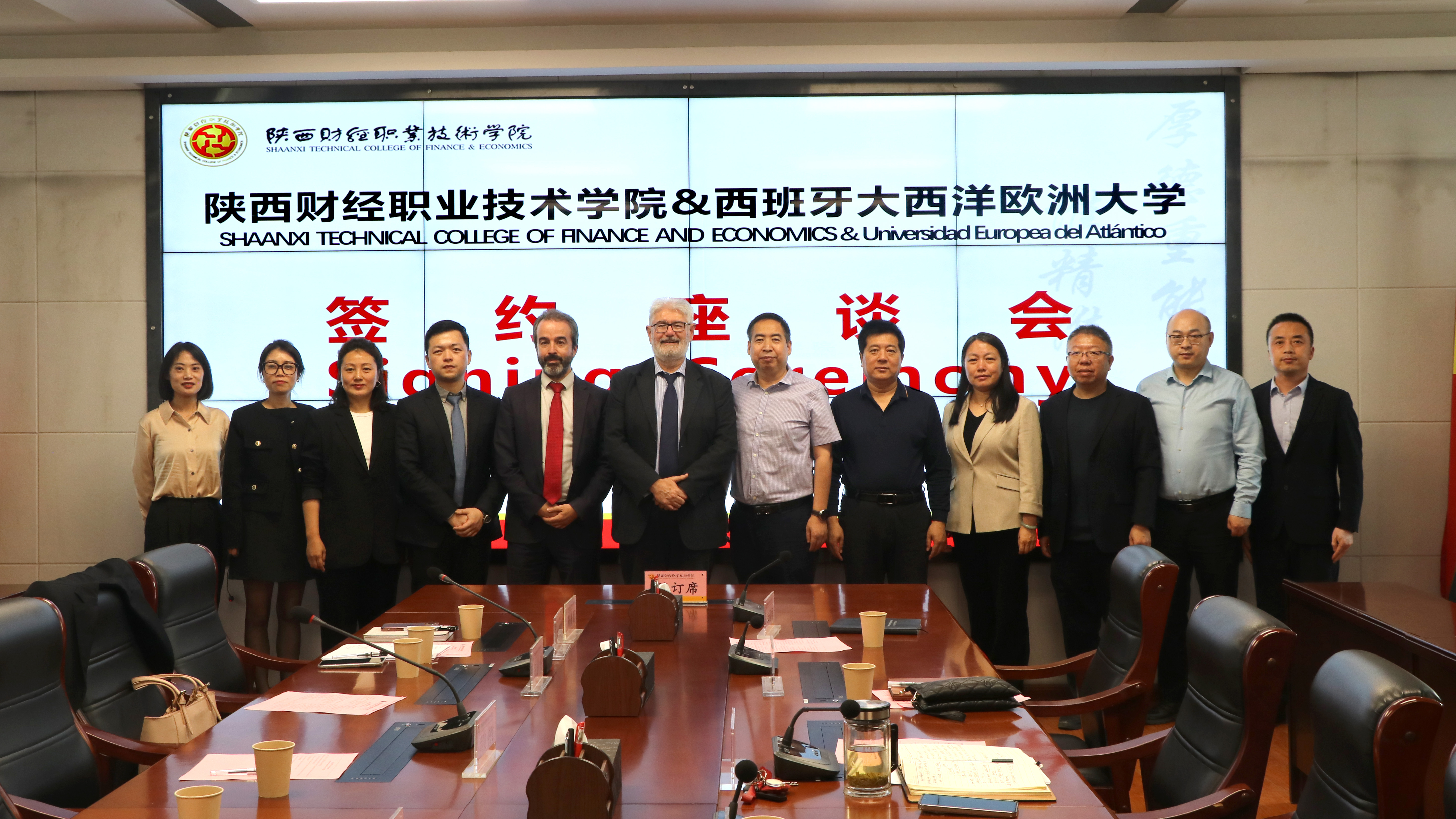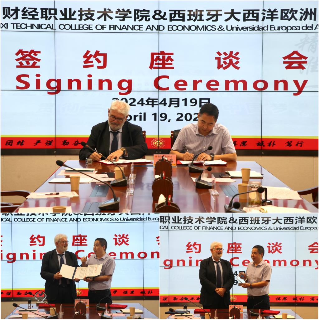 两校现场签署了《陕西财经职业技术学院与大西洋欧洲大学合作协议》。随后,互赠伴手礼。