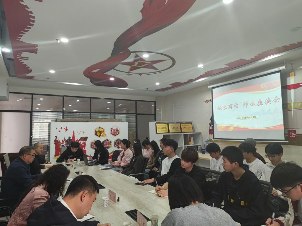为倾听学子心声,了解学生所思、所想、所盼、所求,增进学生对学校的认同感和归属感,加强育人力度、提升教育温度,我校于2024年4月8日下午在教学楼二楼辅导员工作室召开了师生座谈会。校长程书强与16名校长助理团同学进行了面对面交流,广泛听取同学们对学校事业发展的意见建议。会议由学生工作处处长乔晶策主持,党政办、教务处、团委、总务处、保卫处、图书馆等职能部门相关人员参加。