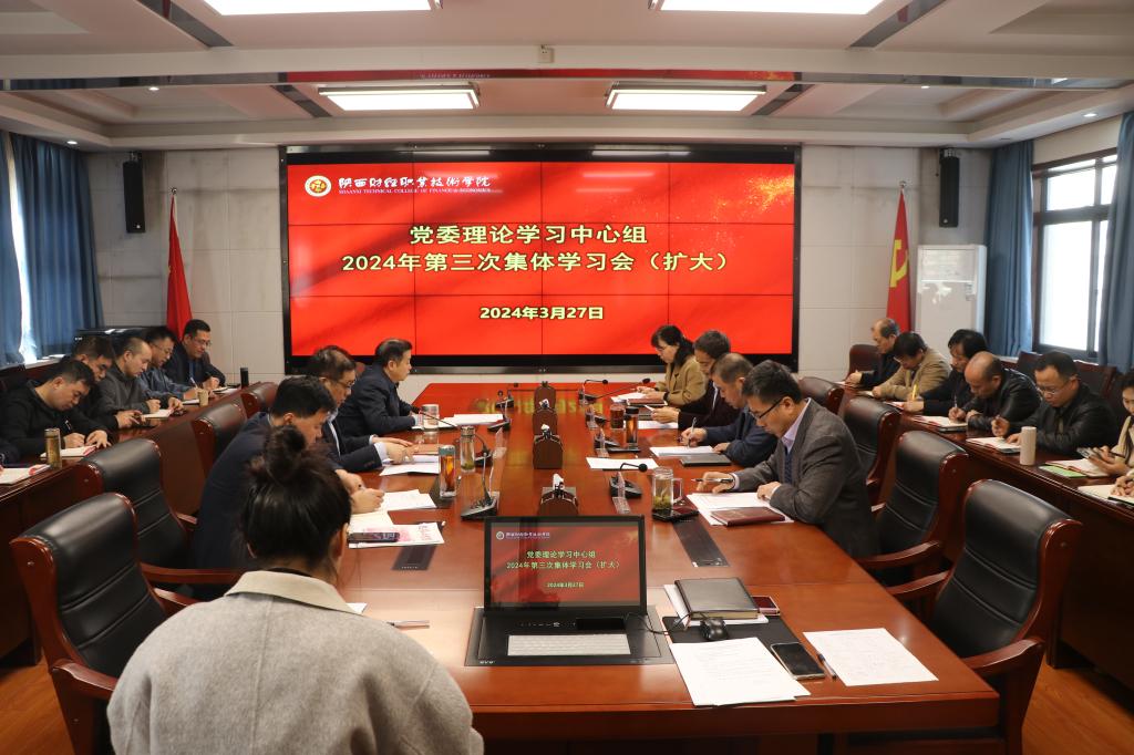 3月27日上午,我校在办公楼四楼会议室召开党委理论学习中心组2024年第三次集体学习扩大会。学校领导班子成员,处级中层干部、直属党支部书记参加。会议由党委书记高玉峰主持。