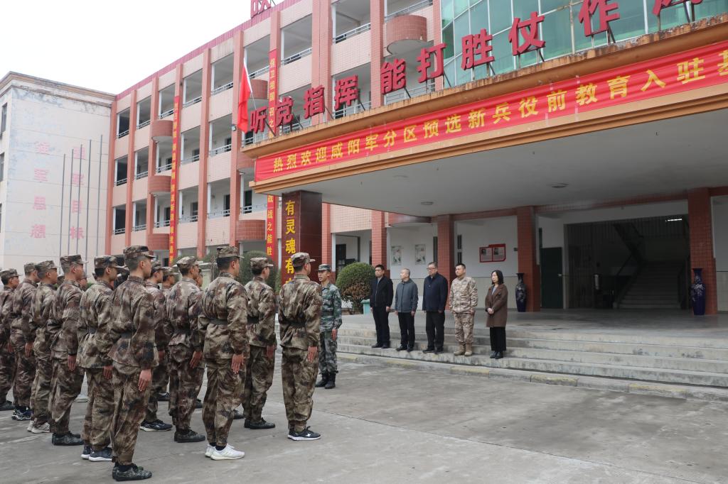 3月13日上午,我校在咸阳役前教育基地举行2024年春季大学生参军入伍新兵欢送仪式。学校校长程书强、秦都区武装部部长黄金刚出席,党政办公室、学生工作处、教务处相关负责同志和22名参军学子参加。欢送仪式由学生工作处处长、大学生就业中心主任、征兵工作站站长乔晶策主持。