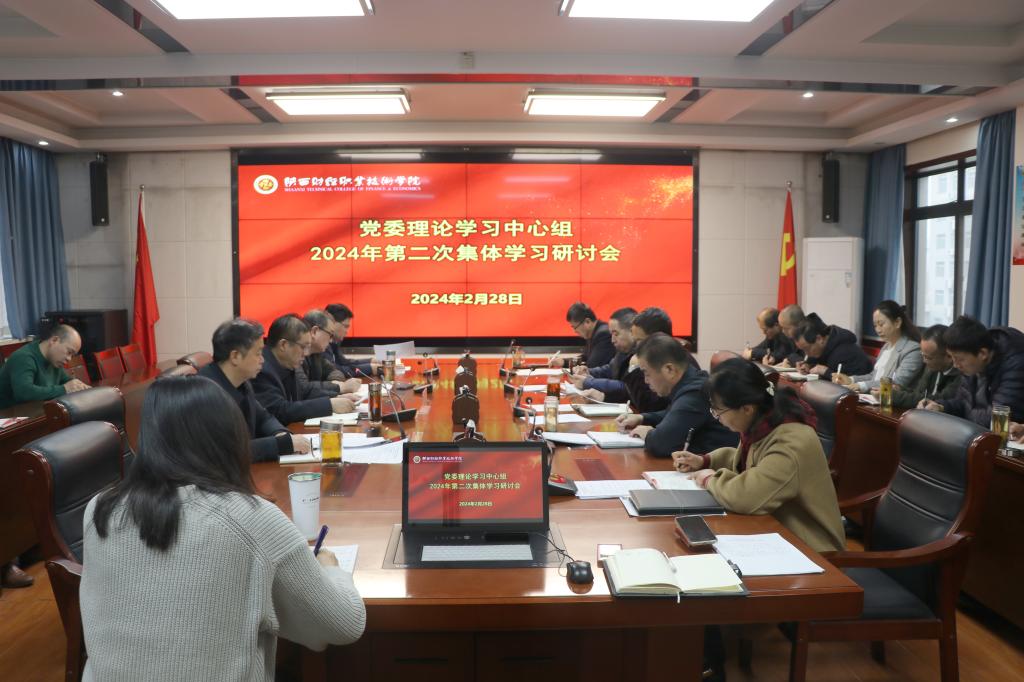 2月28日上午,我校在办公楼四楼会议室召开党委理论学习中心组2024年第二次集体学习研讨会。及时跟进学习习近平总书记重要讲话、重要指示批示精神,开展研讨交流。学校领导班子成员,党委工作部门负责人、二级学院党组织负责人参加。会议由党委书记高玉峰主持。