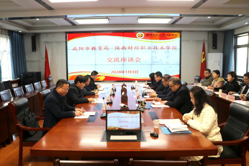 1月3日上午,咸阳市委教育工委书记、市教育局局长丁收卫,就建设“市域产教联合体”相关工作来我校座谈交流,市委教育工委委员、市政府教育总督学郭勇,市教育局成人教育与职业教育科科长、四级调研员李敢创,市教育局秘书科科长罗安彪等陪同。学校党委书记高玉峰、校长程书强,带领教务处、教学质量管理中心、党政办以及各有关二级学院负责人参与交流。座谈交流会由程书强主持。