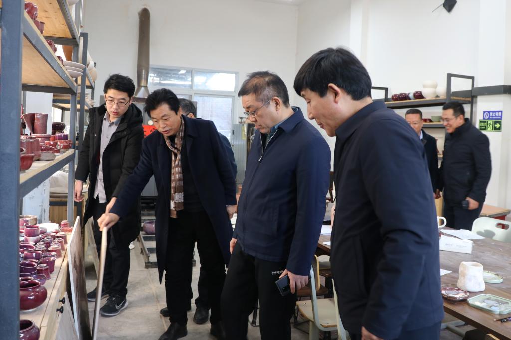 会后,丁收卫一行来到学校大师工作室、陶艺坊进行了实地参观调研。