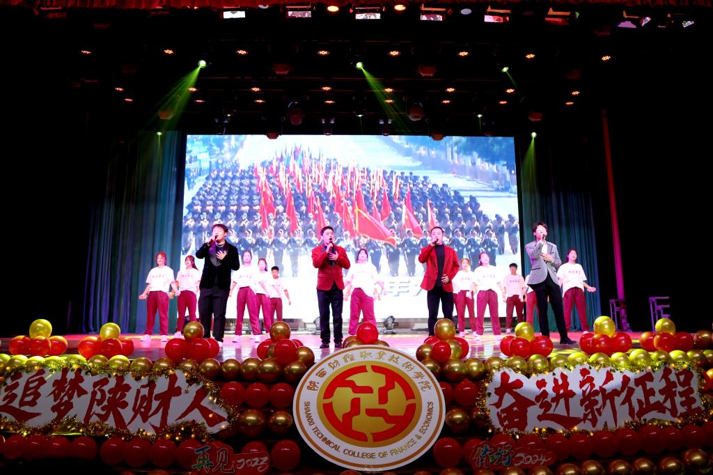 12月28日,我校在大礼堂举办“龙翔万里乘风上,挺膺担当向未来”2024年元旦晚会。学校领导班子成员,学生工作处、保卫处、图书馆,各二级学院党政负责人以及教师代表、学生代表共计1500余人欢聚一堂,辞旧迎新。本次晚会通过团委官方视频号“陕财职院团委”线上同步直播。