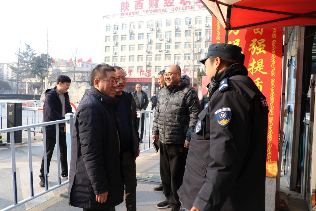 在校园大门处,学校领导现场听取了校园门禁管理、安全巡逻、消防安全等工作的汇报,充分肯定了安保人员一直以来兢兢业业、履职尽责的工作态度和工作热情,勉励他们须臾不可松懈,要用心用情站好每一班岗。