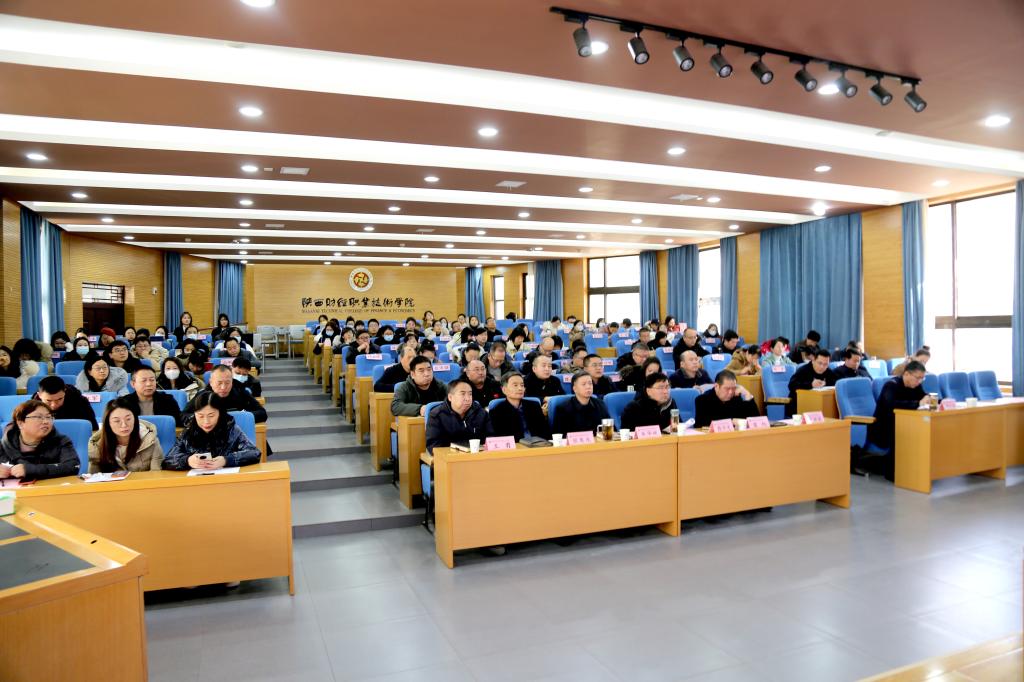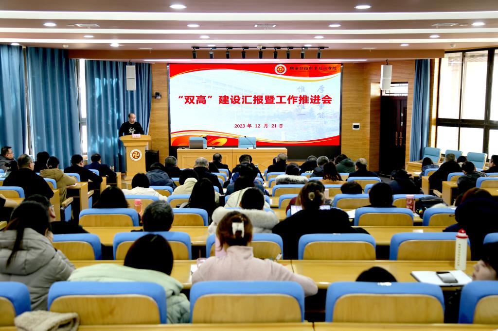 12月21日下午,我校在继续教育培训厅召开“双高”汇报暨工作推进会。学校领导班子参加会议听取了汇报,“双高”建设监督检查组责任领导、党委副书记、纪委书记殷兴光代表学校作了重要讲话;处级干部,专项工作组和管理保障组及相关部门联络员,二级学院办公室主任、教学科科长、教学秘书,省级和校级专业群负责人、群内各专业负责人,教务处科级干部,双高办成员,共120余人参加了会议。双高建设办公室主任刘军主持会议。