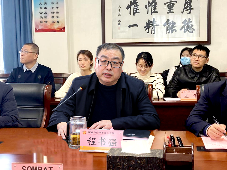 程书强代表我校全体师生向泰国瓦拉亚隆功皇家大学、西那瓦大学一行来访表示热烈的欢迎。程书强从发展历程、办学理念、建校成果及行业优势等方面重点介绍了学校。程书强表示,基于我校“开门办学、开放办学、国际化办学”办学思路,目前已与多所国外大学建立了国际合作项目,希望未来能与泰国瓦拉亚隆功皇家大学、泰国西那瓦大学在人才培养、科学研究及社会服务等方面开展深度沟通,共同推动高等学校教育的创新与国际化发展。