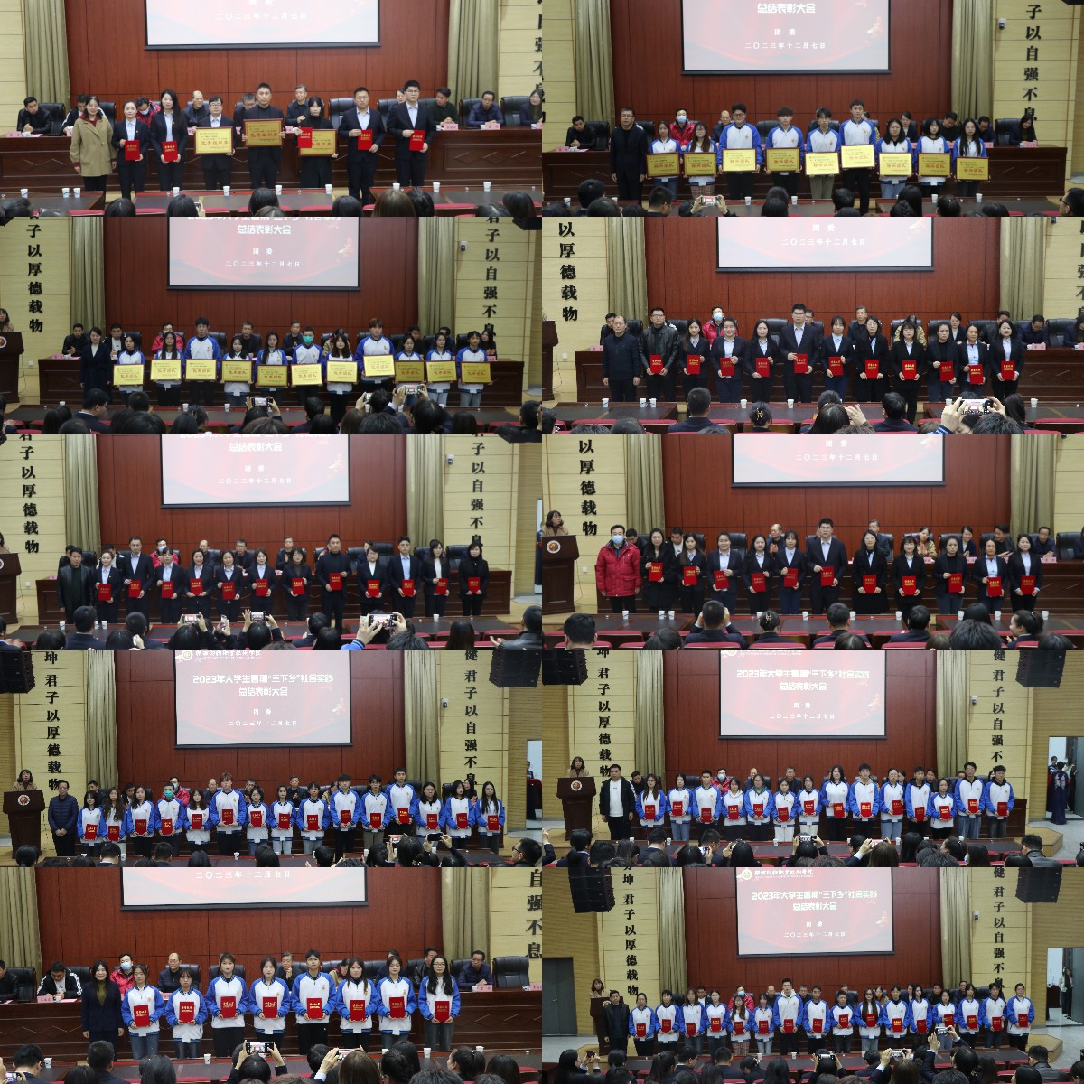12月7日下午4:30,我校在学术报告厅举办2023年大学生暑期“三下乡”社会实践总结表彰会。党委副书记朱华斌,党委委员、宣传部部长严丽丽,党委委员、组织部部长穆天楠以及学生工作处、各二级学院、团委等相关部门负责人及“三下乡”师生志愿者代表、学生代表共计400余人参加会议。表彰大会由团委办公室主任连静主持。