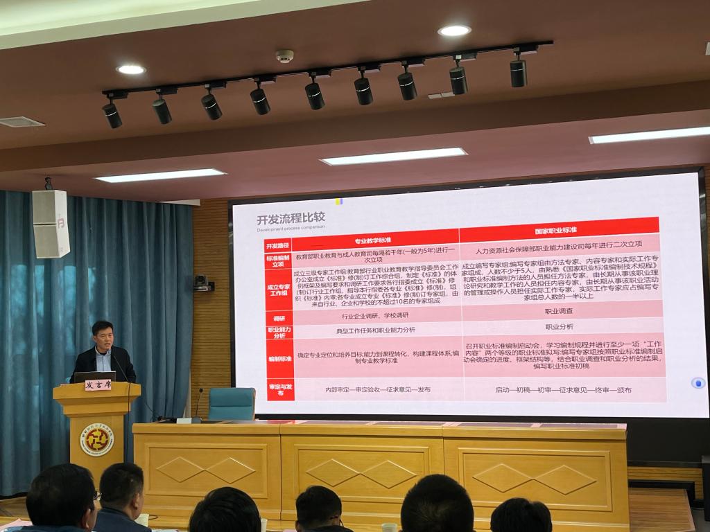 人社部教职委商贸服务分委会秘书长董红祥结合自身从事国家职业培训教材总编的经历,从教学资源开发、教材建设、行业动向、专业发展等方面进行阐述,希望兄弟院校携手共探专业发展趋势,加快形成产教联动、校地优势互补的产教深度融合发展格局。