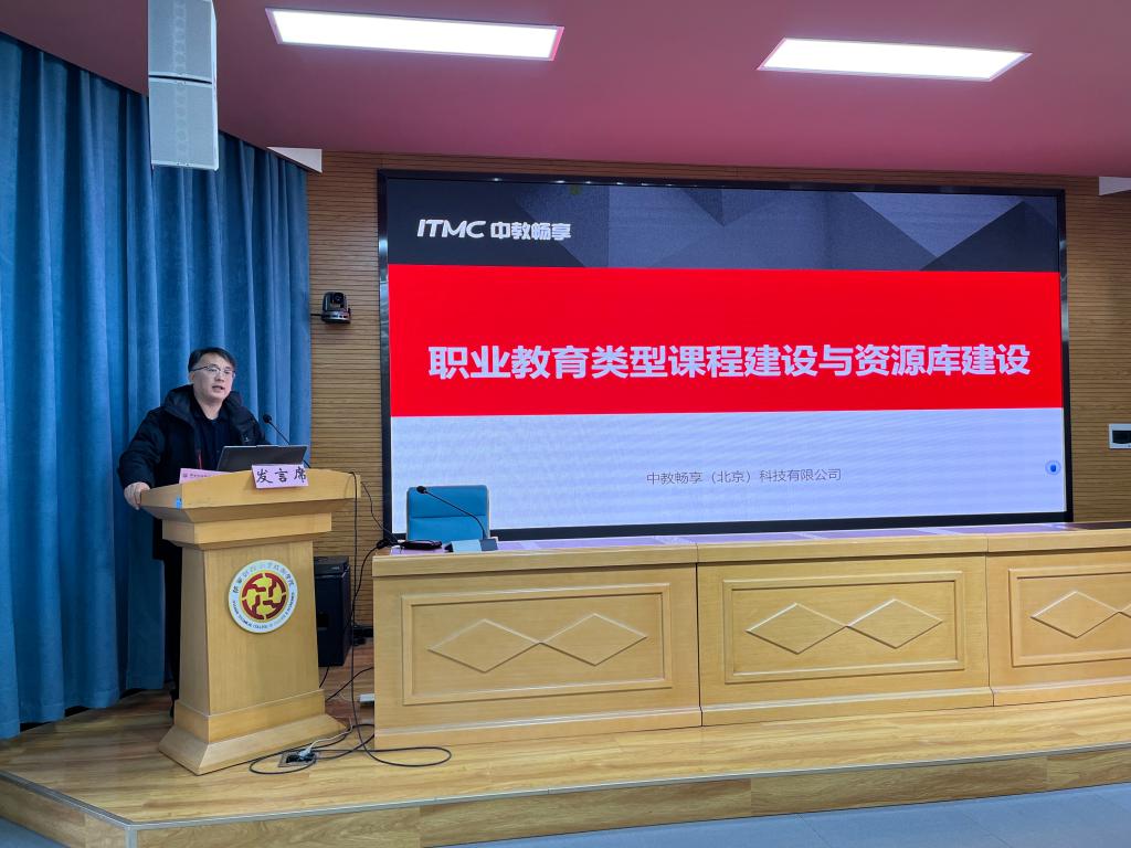 中教畅享(北京)科技有限公司总经理王鹏就职业教育类型课程建设与资源库建设进行介绍,他表示资源库建设及相关软件开发、应用将会更好的实现数字化课堂,有效助力优质教学成果产出。