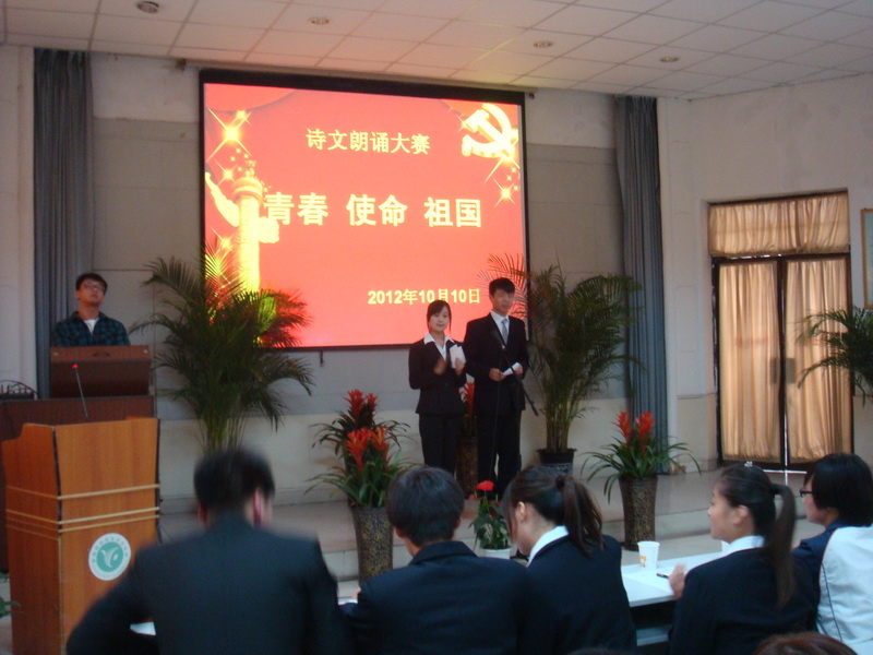 为了庆祝祖国63岁华诞,引导同学们理性爱国,激励同学们奋发图强,院团委于9月20日至10月10日举办了以“青春•使命•祖国”为主题的诗文朗诵大赛。