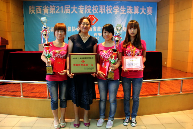 由陕西省珠算心算协会、陕西省教育科学研究所主办的陕西省第21届大专院校职校学生珠算大赛,2012年5月20日在西安军展大厦三楼会议室举行。本次参赛院校有西藏民族学院、陕西工业职业技术学院、陕西财经职业技术学院、宝鸡职业技术学院、陕西能源职业技术学院、杨凌职业技术学院、延安职业学院、渭南职业学院、陕西省经贸学校、榆林财贸学校、西安雁塔职业中学等共17支代表队51名选手参加。比赛分加减算、乘算、除算、账表算等四个项目,每个项目比赛时间为10分钟。