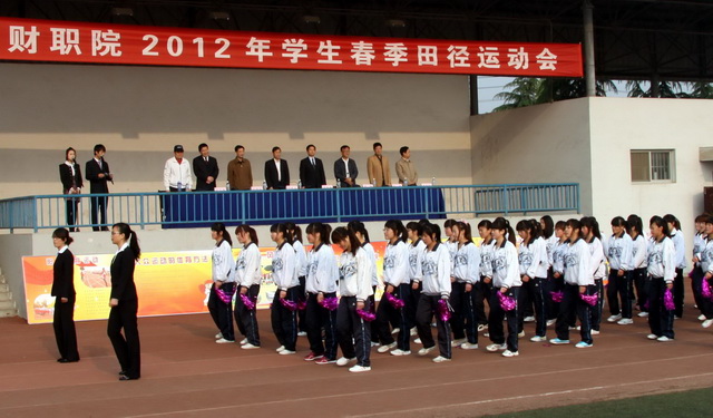 随着主持人刘晓玉一声令下,运动会入场式开始。在运动员进行曲中,仪仗队方队首先闪亮登场,拉开序幕,会计系、信息工程系、工商管理系、财政税务系和裁判员方队依次走过主席台前,接受领导检阅。入场仪式庄严有序,突出了“更高、更快、更强”的主题。