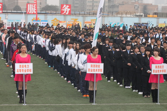 3月19日下午,由省教育厅、省人力资源和社会保障厅联合举办的2012年陕西省职业院校技能大赛总开赛式在西安举行。出席本次开幕式的有省政协副主席李进权,省十届人大常委会委员、省人大教科文卫委员会副主任曾敏利,省教育厅厅长杨希文等省上领导,及全省职业院校领导、企业代表和来自全省职业院校的50多个代表队。总开赛式由省教育厅副厅长郭立宏主持,省人力资源和社会保障厅副厅长雷宝崎、省教育厅副厅长蔡钊利讲话。我院党委书记凌喜春,院长阎平,副院长刘晓玉、刘建彪及90余名师生参加了本次总开赛式。