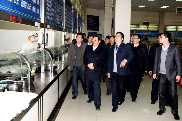 在学生食堂,杨厅长耐心听取管理人员的介绍后说,民以食为天,伙食是关乎学生健康、保证教学的关键环节,一定要保证质量和安全。他还就创新管理、办好伙食,与炊管人员进行了亲切交流。在ERP实验室,杨厅长与正在上沙盘实训课的师生进行了交流。他耐心询问,仔细了解教师的课堂实训效果、市场营销专业社会顶岗实习、就业等情况,并对校内实训与企业实习提出建议。在视察多功能运动场和学校预留空地时,杨厅长对学校的硬件建设和规模表示了极大关注,希望学校放眼未来,积极发展。在参观校史馆时,各位领导对51年来学院的发展成就和人才培养成绩给予高度赞赏。