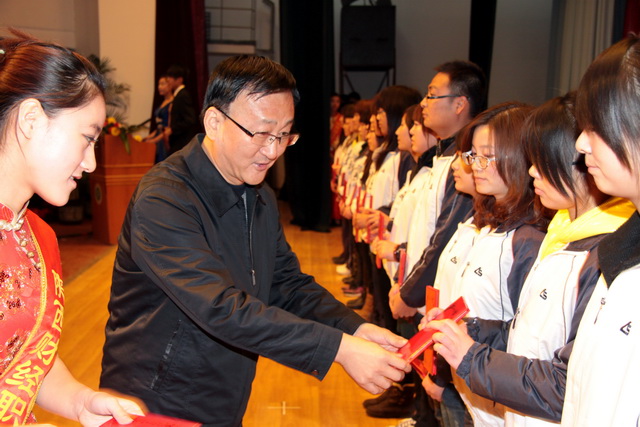 本次颁奖晚会由教务处主办,信息工程系承办,其他各系部协办。信息工程系副主任郭崇罡老师任总策划,演职人员共240余人。主要为我院会计手工技能竞赛、会计电算化、办公应用技能竞赛、沙盘模拟经营竞赛、金融模拟炒股、工程预算、寿险营销技能大赛的获奖同学颁奖。依照学院规定,各项竞赛分设个人一、二、三等奖及团体奖,经诸位评委老师严格评审,来自四个系部三百多名同学在竞赛中脱颖而出。学院领导阎平老师、刘晓玉老师、王文汉老师、刘文雅老师先后为获奖同学、班级颁奖,并合影留念。