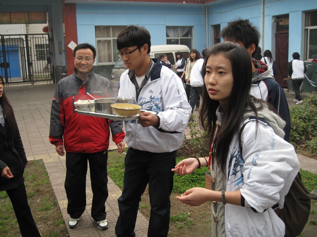 11:30,热气腾腾的饺子被同学们端到了每个老人的手里,看到同学们的笑脸,看着碗中的饺子,老人们有些哽咽,几分钟后才开始吃饺子。对于那些行动不便、不能自理的老人,同学们就给他们喂着吃。老人们都说孩子们懂事,这顿饺子是这几年中吃得最舒心、最有味道的一顿饭。他们都比往常多吃了一些,并劝说孩子们也吃一些饺子。24名孤寡老人和工作人员吃饱之后,还剩的好几百个饺子,全部下锅,饺子出锅后,同学们围了两圈,每人都尝了几个,愉快地分享着自己的劳动成果。