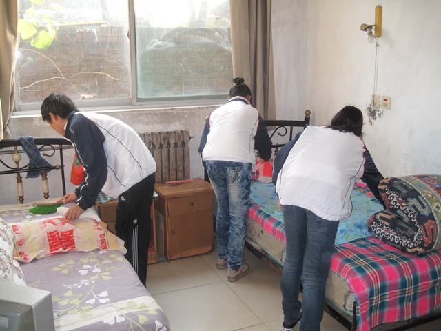 11月26日上午,在学生工作部副部长兼团委书记宋波老师的带领下,学院“爱心之旅”志愿者协会和“校园之声”广播室60多名成员,到咸阳市秦都区“夕阳红”托老中心开展了“爱心接力”敬老服务活动。内容包括打扫庭院、整理内务、给孤寡老人包饺子、过生日、演节目等。