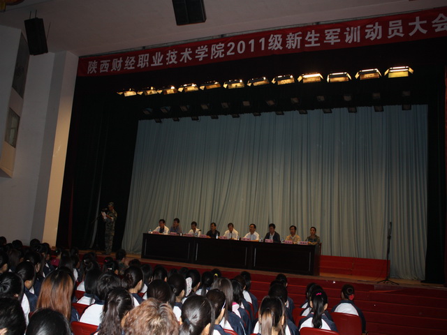 9月5日,陕财职院在大礼堂召开了2011级新生军训动员大会。