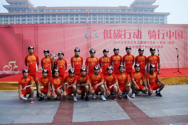 本次骑行活动的主题是“红色之旅,绿色播种”,是为庆祝中国共产党成立90周年而组织的一次特别活动。担任此次骑行活动西安-延安的主力骑手是来自陕西省高校的20名大学生。我院会计系学生张博、赵腾代表陕财职院参加了此次活动。
