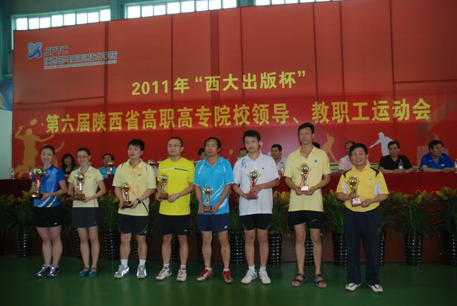 6月17日至19日,2011年“西大出版杯”第六届陕西省高职高专院校教职工、校领导、体育部长羽毛球比赛暨校领导乒乓球象棋友谊赛在陕西邮电职业技术学院体育馆举行。来自全省十几所高职高专院校的上百名教职工队员和校领导参加了比赛。我院组织了以院长阎平为领队、院领导刘晓玉、刘建彪、王文汉及12名教职工为队员的代表队参加了这次比赛。