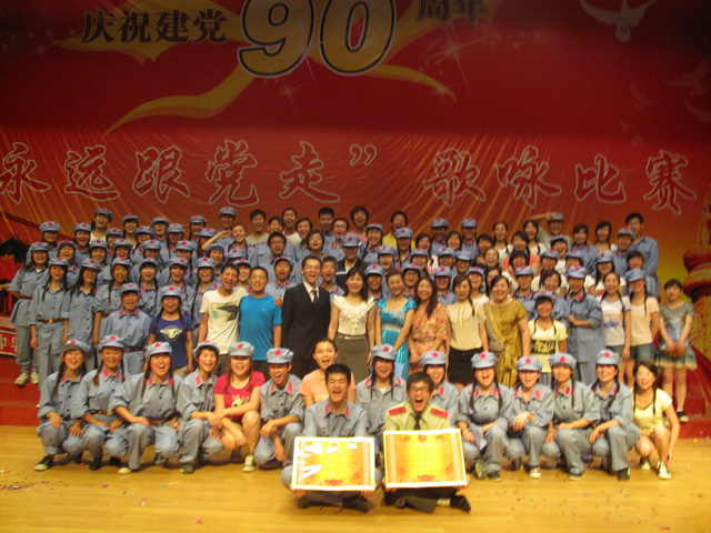 2011年6月16日19:30分在陕财职院大礼堂隆重举行了由会计系主办的“庆祝建党九十周年‘永远跟党走’歌咏比赛”.参加本次歌咏比赛的评委有学院副院长刘建彪老师、学院党委副书记兼纪委书记刘文雅老师以及学院各处室、系部负责人、会计系辅导员、班主任等。