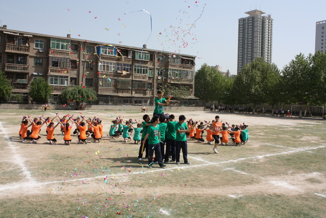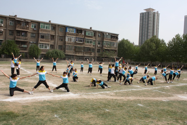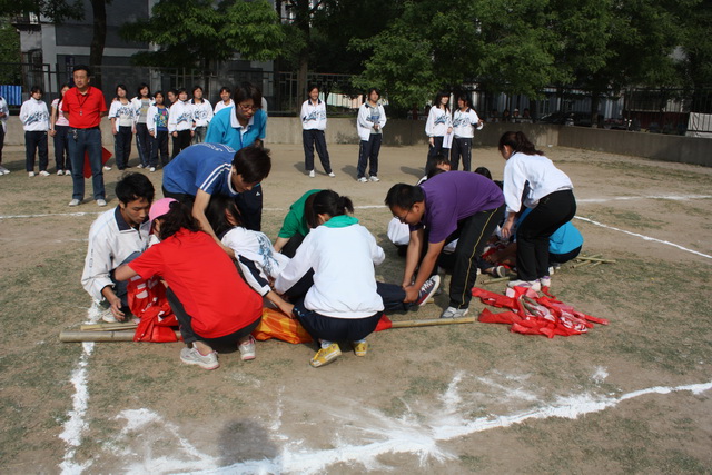 随后裁判员代表程军峰,运动员代表薛超进行了宣誓,在全体运动员、裁判员退场后,伴随着欢快的音乐,400名学生手持红、黄双色展板,表演了以辉煌母校、和谐校园、歌唱祖国为主题的大型团体操《美好明天》,将整个开幕式推向了高潮。开幕式结束后,激烈的比赛开始了,首先进行了南校区20个班级的健美操比赛,紧接着是为期两天的同舟共济、紧急救援等锻炼团队合作精神的15个团队项目和天昏地暗、简式保龄球等带有趣味性的6个个人项目比赛。运动员们全身心地投入到比赛中去,本着敢拼敢搏、团结协作的精神,使得赛场上捷报频传。