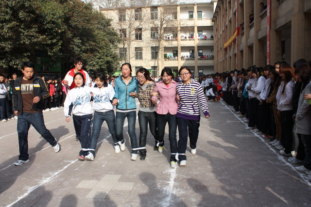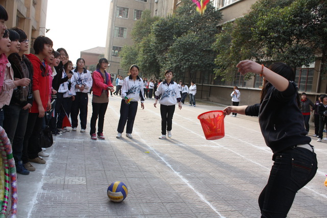 四点十分,开幕式正式开始,首先是张朴老师致开幕词,他希望我们能在健身中娱乐,增强同学们之间的团结协作,之后由程军峰老师详细地讲了此次游戏的规则,最后,宿管会主席王新同学发言,她表示了此次活动宿管会全体成员会兼着公平、公正、公开的原则,同时也会认真的为同学们服务的决心。接着游戏活动正式拉开了帷幕,同学们热情高涨,各参赛队员都积极的在赛道的起点处准备着。随着哨声的响起,两队的比赛正式拉开了帷幕,第一关是袋鼠运瓜,两队分别有5名同学,三名同学站在起点,两名同学站在终点,往返运球,进行迎面接力,第二关是踢毽子入桶,每名参赛者必须踢进两枚毽子,才可以进行到下一轮呼啦圈竞走比赛。第四关是穿珠引线,每位参赛者都要先转圈,然后再倒走穿珠,走到终点。最后,在终点处再进行每队两组的六人七足游戏。整个活动过程中,若有同学不小心摔倒,宿管会的成员就会立即上前扶起,其他同学则会为他们呐喊加油,随着一声声整齐洪亮的加油声,运动会进入了高潮。学生参赛队比赛结束后,是老师和学生合作的比赛,老师和学生分为两组,也分别进行了闯难关的比赛,每位老师脸上都洋溢着欢笑,此次活动在老师和同学们的欢笑中落幕。