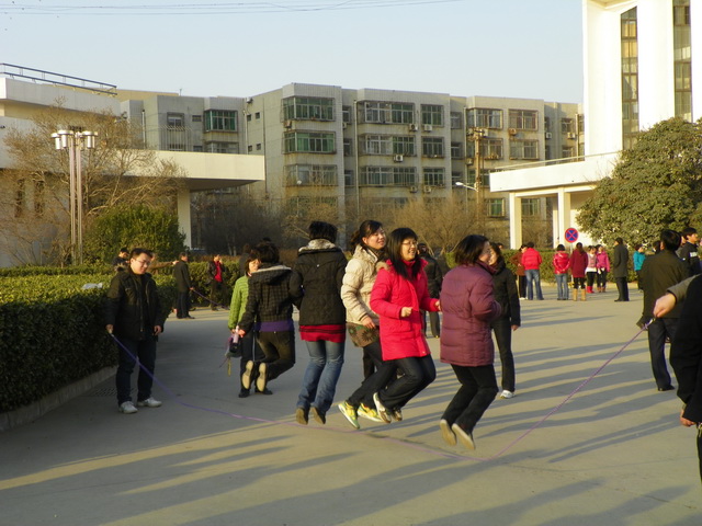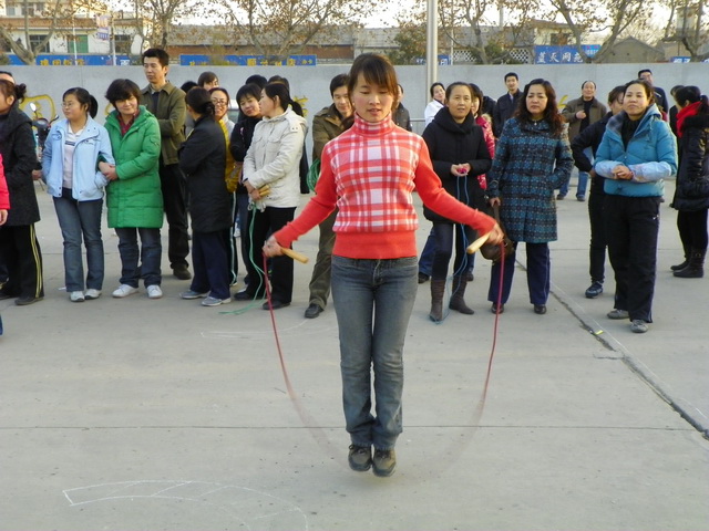 为了丰富教职工业余文体活动、锻炼体魄、增进友谊、增强集体凝聚力,12月28日下午4点,学院工会在教学楼前举行了跳绳比赛。130余人参加了比赛,各工会小组积极组织会员到达现场,或参加比赛或为参赛者鼓掌、加油、助威。首先进行的是个人单跳比赛,参赛队员有的双脚起跳、有的单脚轮换起跳,各个不甘示弱。最为精彩的是集体跳绳比赛,参赛队大家齐心协力、奋力拼搏,抡大绳的鼓足全身气力、跳绳的喊着口号协调动作、场外拉拉队则呐喊助威加油,整个场面热闹异常。经过紧张激烈的角逐,王华获得一等奖,叶雪获得二等奖,余梅、高健霞、钱涌宁、宋雅琴、李建兵、达航行、杨梅获得三等奖,第13工会小组获得集体一等奖,第二、三工会小组并列获得二等奖,第一工会小组获得三等奖。院工会主席杨新彪以及工会委员为获奖者颁发了奖品和奖金。杨主席在颁奖仪式说到:感谢大家对工会活动的支持,今天人员到位之多、场面之热烈,是前所未有的,希望通过这些有益的群众文体活动,增进友谊、增强体质,以健康的体魄为学院工作多做贡献。